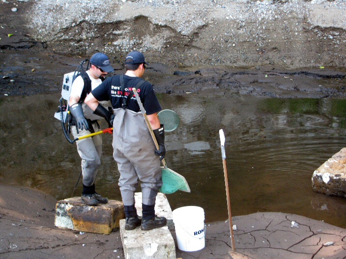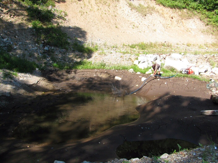 It has been busy behind the scenes with the recovery of approximately 1400 fry from the creek and sediment pond by Dave Harper and Kenji Miyazaki. We pumped out the sediment pond so that they could get closer to the fish to net them. They were here for two afternoons working very hard so that we could excavate the pond and buildl the new rock weirs as secondary sediment traps.